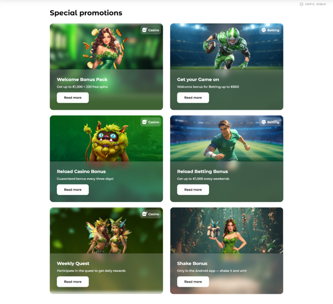 Casino Verde participuje v network promocích společně s dalšími platformami ve skupině, což přináší dodatečné benefity pro hráče napříč celou sítí. Celebrating 15 years of Endorphina nabízí prize pool 650,000 EUR s různými typy soutěží a turnajů. Plenty of Fish campaign poskytuje různorodé odměny od free spinů po cash bonusy na základě denní aktivity.